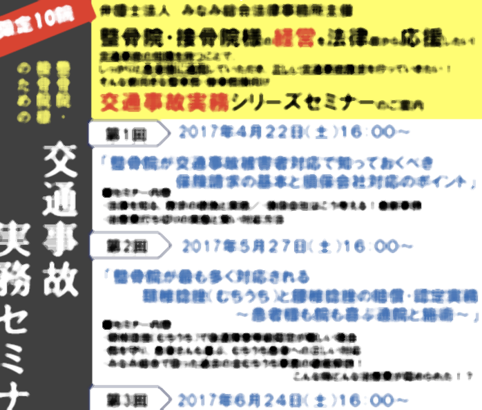 - 交通事故分野にこれから取り組む上で、保険代理店・治療院と正しいお付合いから始めたい法律事務所経営者様