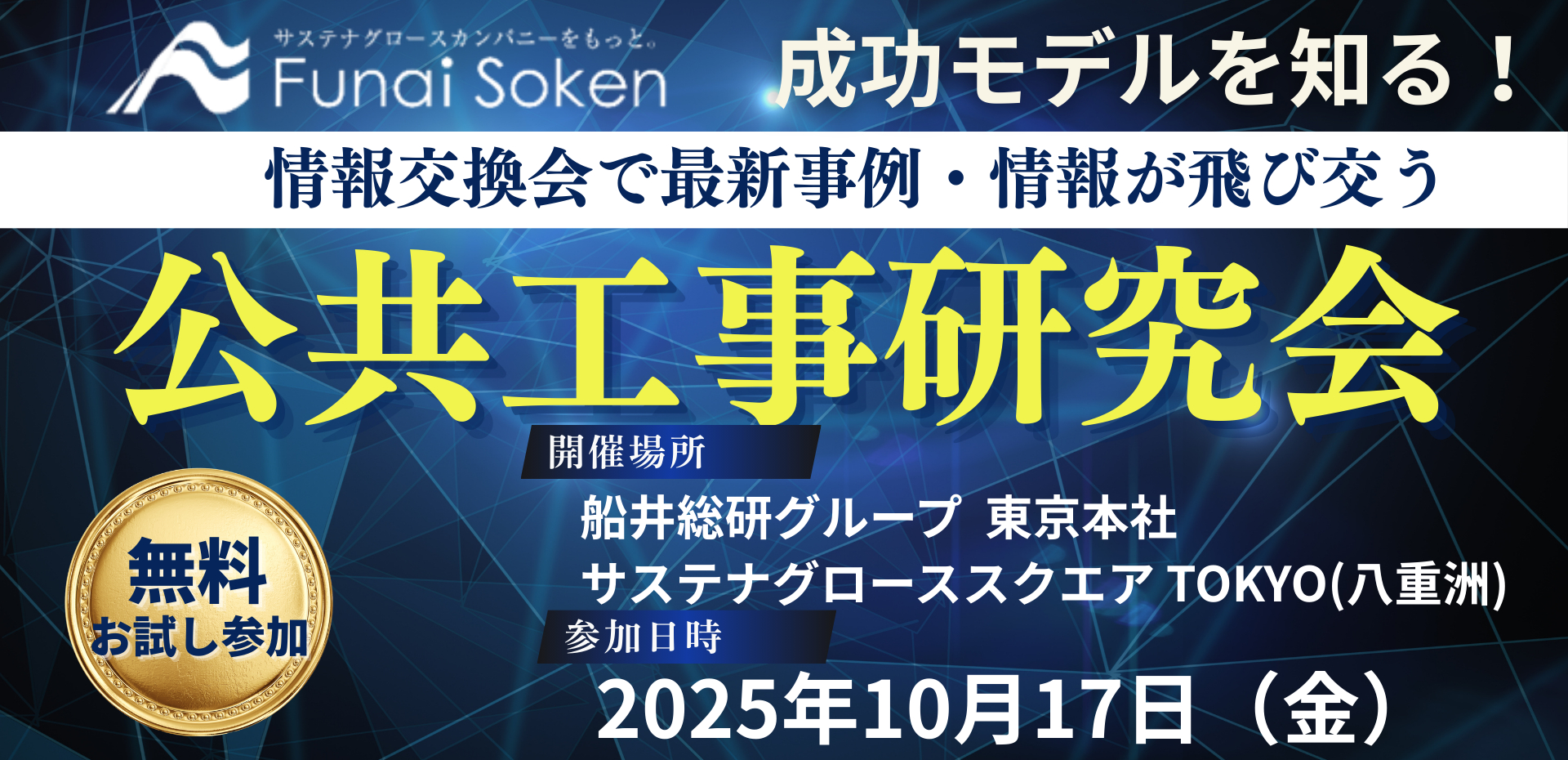 2025年10月17日 (金) | 13:00~16:30 | 船井総研グループ 東京本社 サステナグローススクエア TOKYO(八重洲) |